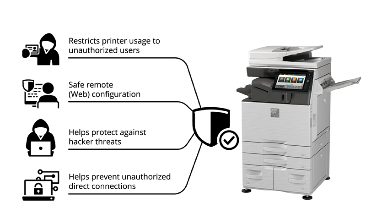 Sharp uses a multi-layer security approach, giving complete control over the users, ports, devices and applications that interact with Sharp MFPs(Multifunction printers) on your network.