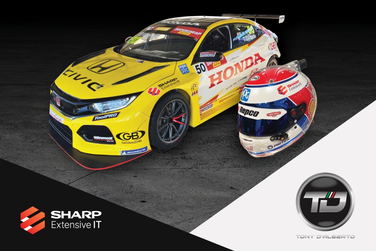 The famous Sharp EIT Solutions branding will be seen on D’Alberto’s title-leading Honda Civic Type R TCR, as well as his racing helmet that he will use in the upcoming Bathurst 1000 in October.